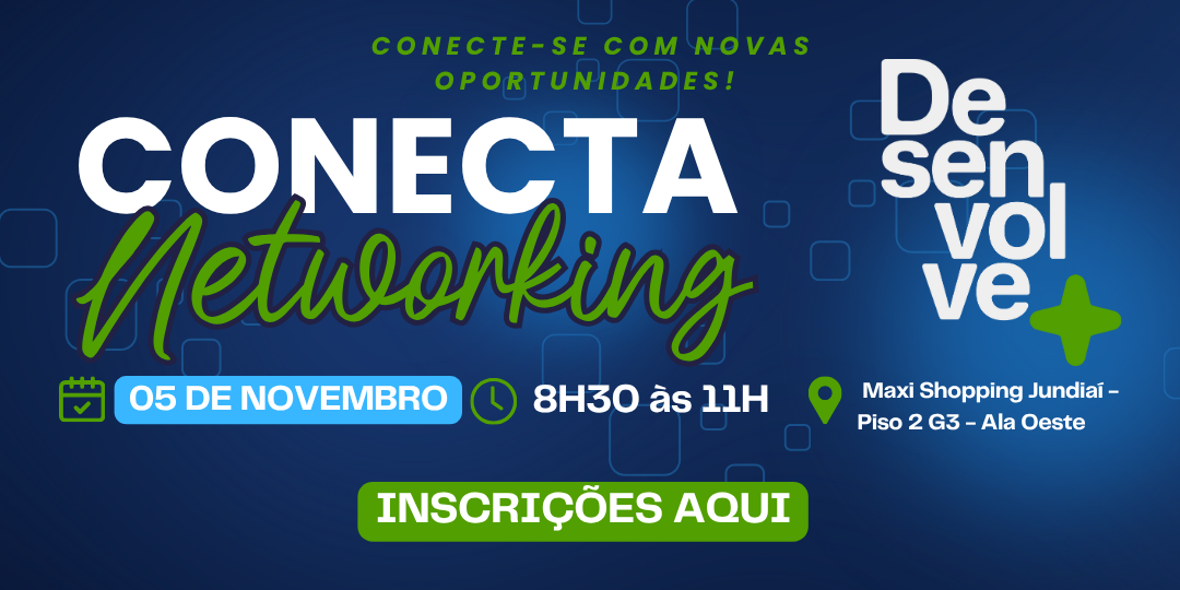 A próxima edição do Conecta Networking ocorre na primeira quarta-feira de novembro, dia 05, das 8h15 às 11h, no Espaço Jundiaí Empreendedora. O encontro já se consolidou como uma das principais iniciativas regionais para geração de oportunidades, novos negócios e trocas de experiências entre empresários. CLIQUE AQUI PARA SE INSCREVER – INSCRIÇÃO SOLIDÁRIA: SOLICITAMOS A […]